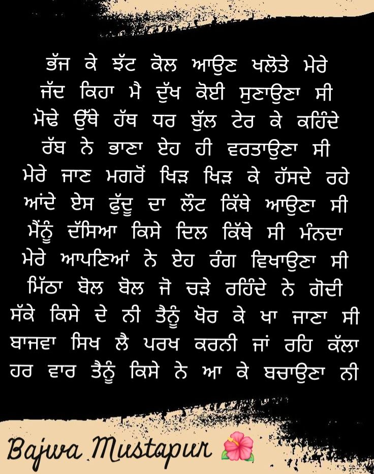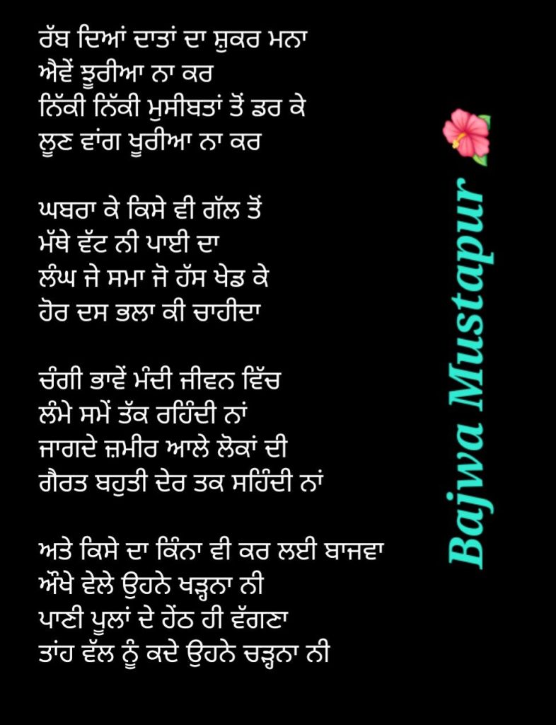 ਜ਼ਿੰਦਗੀ ਦੇ ਹਰ ਇੱਕ ਪਲ ਨੂੰ ਹੱਸ ਕੇ ਪੂਰੀ ਰੀਝਾਂ ਅਤੇ ਖੂਬਸੂਰਤੀ ਨਾਲ ਜਿਆ ਕਰੋ ਆਉਣ ਵਾਲਾ ਪਲ ਖੋਰੇ ਸਾਡਾ ਹੋਵੇ ਜਾਂ ਨਾ 🙏🌺